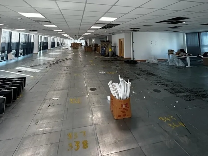 - Remove all exisiting partitions, tea points, floorboxes, and furniture